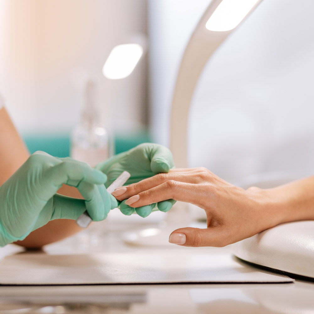 Включает в себя удаление кутикулы, обработку ногтей и нанесение лака или других покрытий.